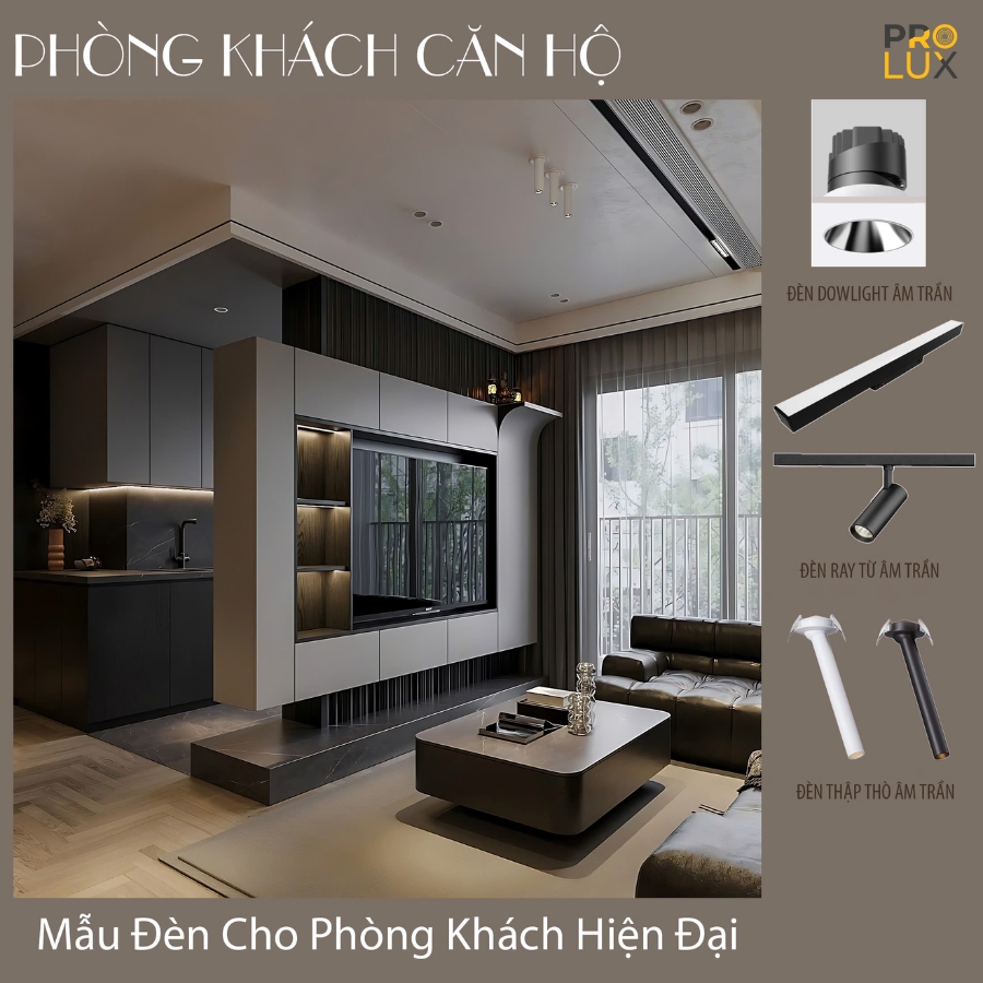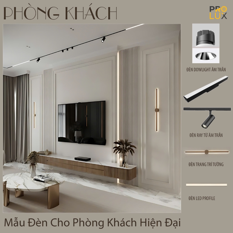 Prolux cung cấp trọn gói giải pháp chiếu sáng phòng khách sang trọng, hiện đại.