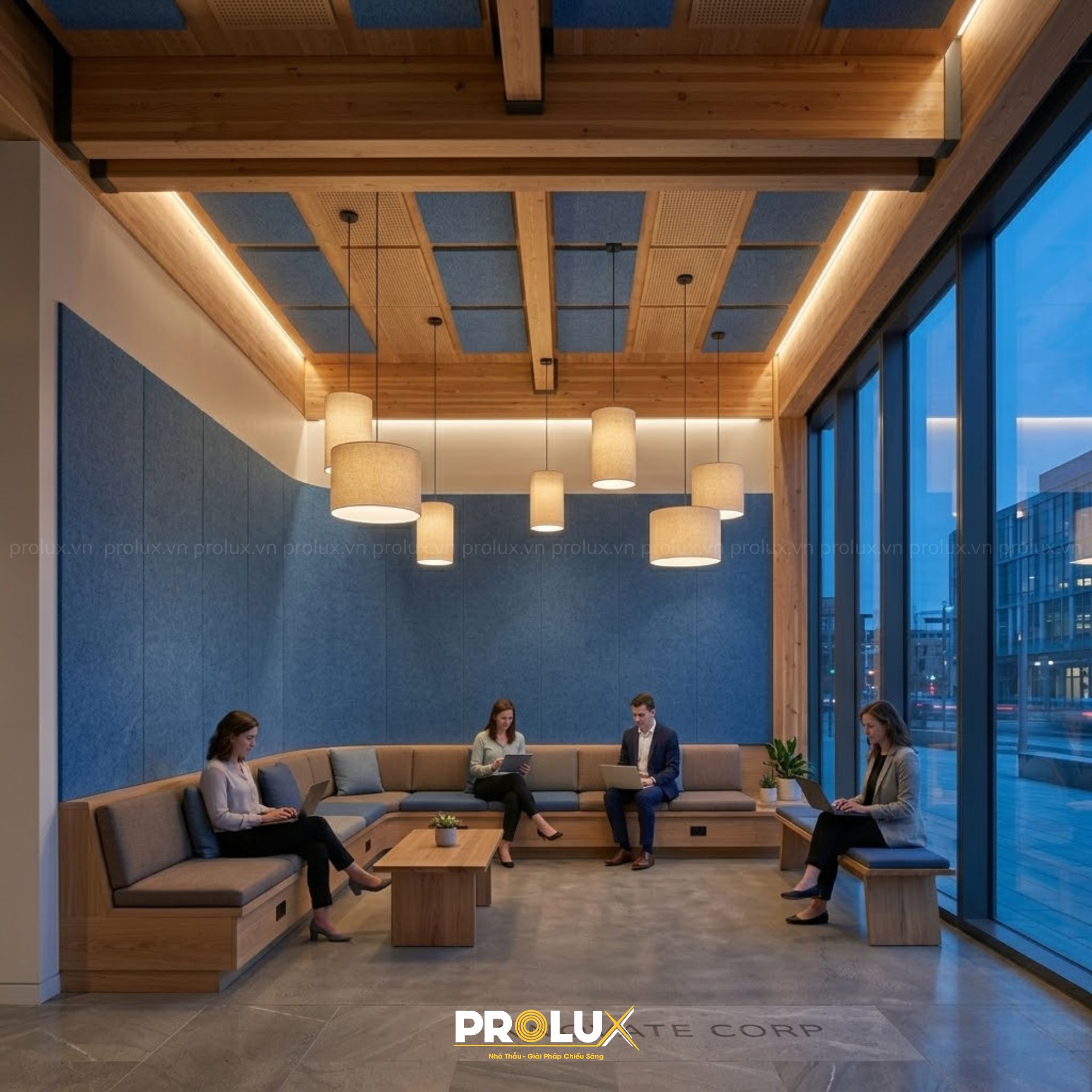Khu vực làm việc cần ánh sáng đều, ổn định, hạn chế nhấp nháy. Đèn panel LED hoặc đèn linear là lựa chọn phổ biến trong các văn phòng hiện đại.