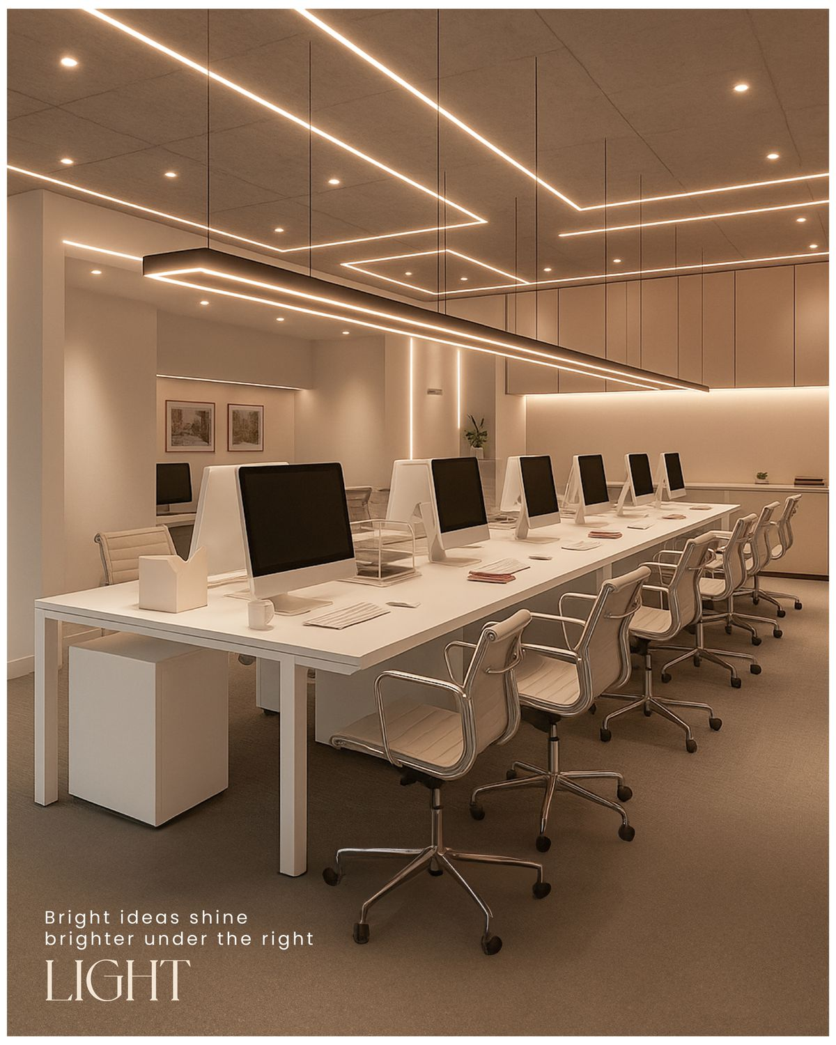 Trong giới kinh doanh, văn phòng chính là bộ mặt của doanh nghiệp. Một hệ thống chiếu sáng được đầu tư bài bản thể hiện sự tinh tế của chủ nhân. Thiết kế chiếu sáng kiến trúc đúng nghĩa không phải là lắp thật nhiều đèn, mà là cách chúng ta điều khiển bóng đổ, tạo điểm nhấn và khơi gợi cảm xúc. Khi bước vào một văn phòng được thiết kế lớp lang, khách hàng và đối tác sẽ ngay lập tức cảm nhận được sự chuyên nghiệp, sang trọng và tầm nhìn của nhà lãnh đạo.
