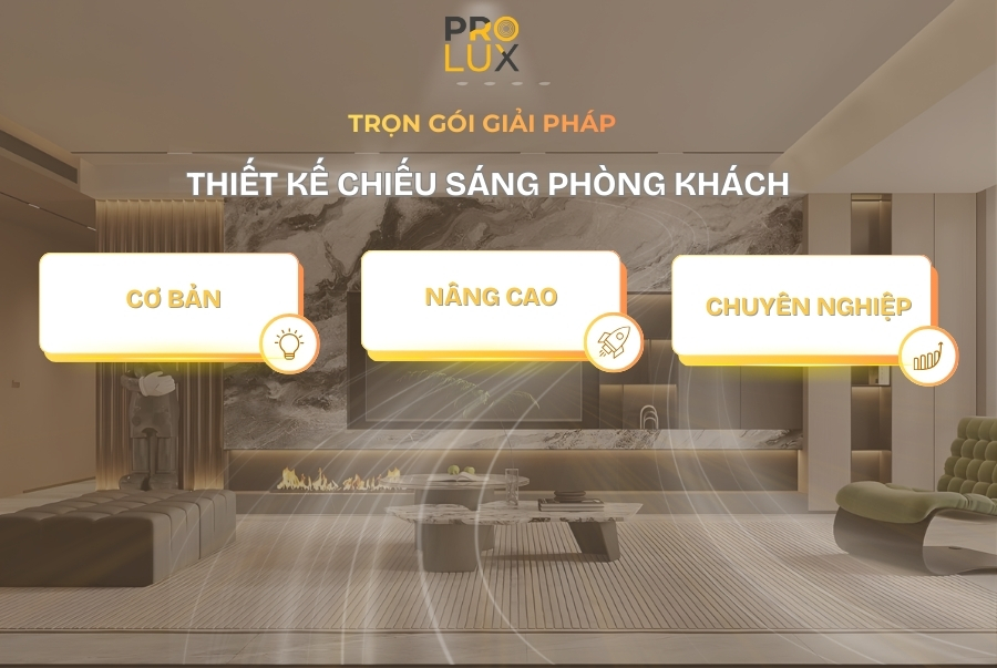 Chúng tôi mang đến trọn gói giải pháp thiết kế chiếu sáng phòng khách, được xây dựng bài bản theo 3 cấp độ: Cơ bản – Nâng cao – Chuyên nghiệp, đáp ứng linh hoạt nhu cầu sử dụng, gu thẩm mỹ và mức chi phí khác nhau.